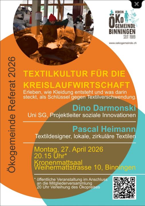 Referat am Montag, 27. April 2026, 20:15 Uhr, im Kronenmattsaal, Weihermattstrasse 10, Binningen.