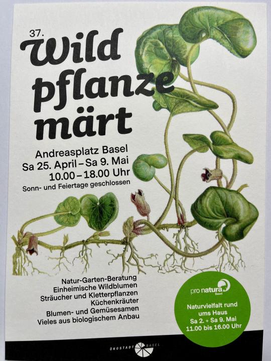 Der Wildpflanzenmärt auf dem Andreasplatz dauert von Samstag, 25. April bis Samstag, 9. Mai 2026, täglich 10.00–18.00 Uhr (ausser Sonn- und Feiertage).